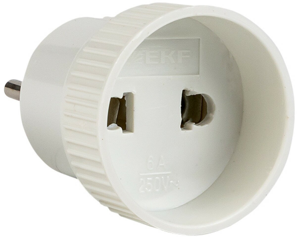 Адаптер-переходник, без заземления (6А, 250В), белый, EKF PROxima