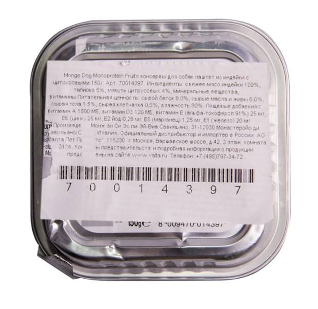СохранитьВлажный корм для собак Monge Monoprotein Fruits, беззерновой, индейка, с цитрусовыми 150 г интересное:
