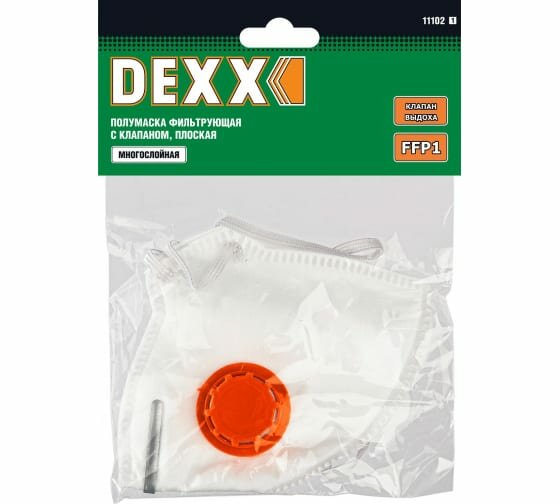 DEXX класс защиты FFP1, плоская, фильтрующая полумаска с клапаном выдоха (11102)