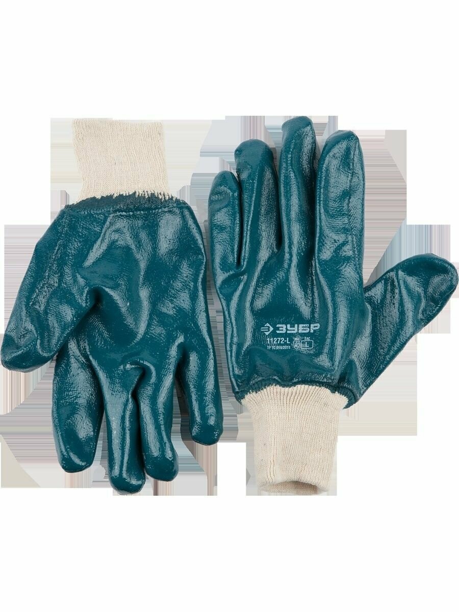 Перчатки Зубр рабочие с манжетой, с полным нитриловым покрытием, размер L (9) 11272-L .