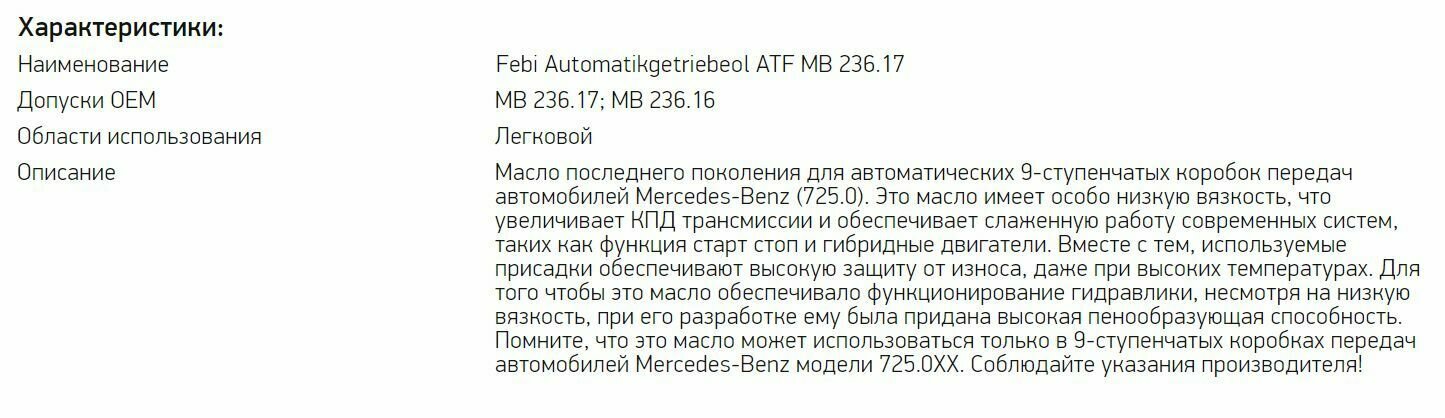 FEBI 47716 MB 236.17 масо трансмиссионное (ATF) 1