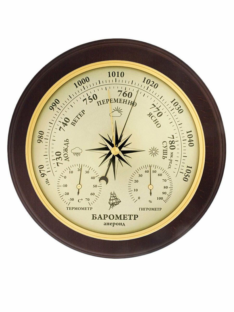 СохранитьМетеостанция механическая бриг КМ91420ТГБ-В для дома в деревянном корпусе,черная, настенная. Барометр анероид, термометр,гигрометр. интересное: