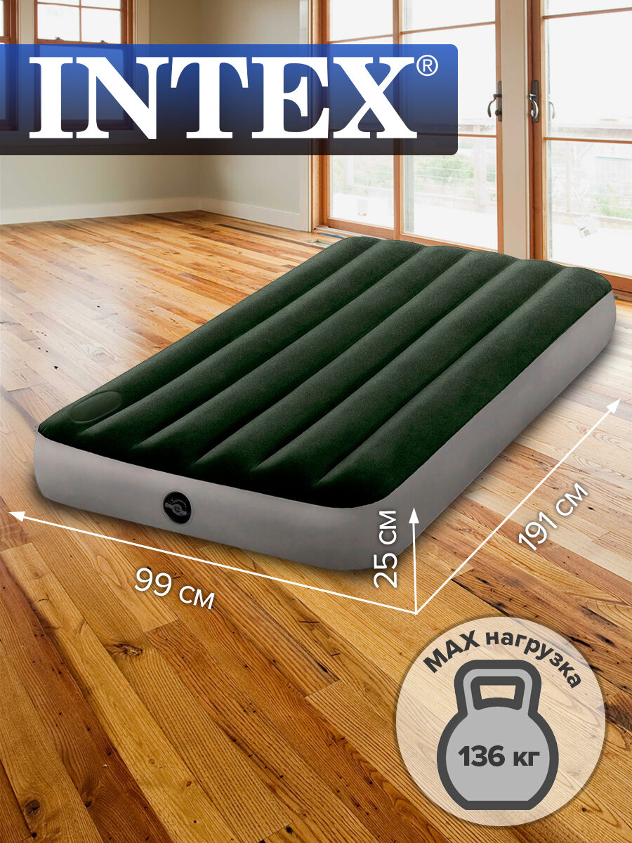 Купить Надувной матрас Intex 99х191х25см, встр. ножной насос, до 136кг