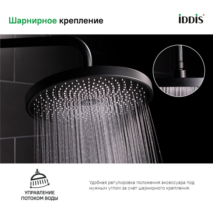 Верхний душ IDDIS Душевая насадка верхняя круглая, черная, SpaHome, IDDIS, SPA26BPi64