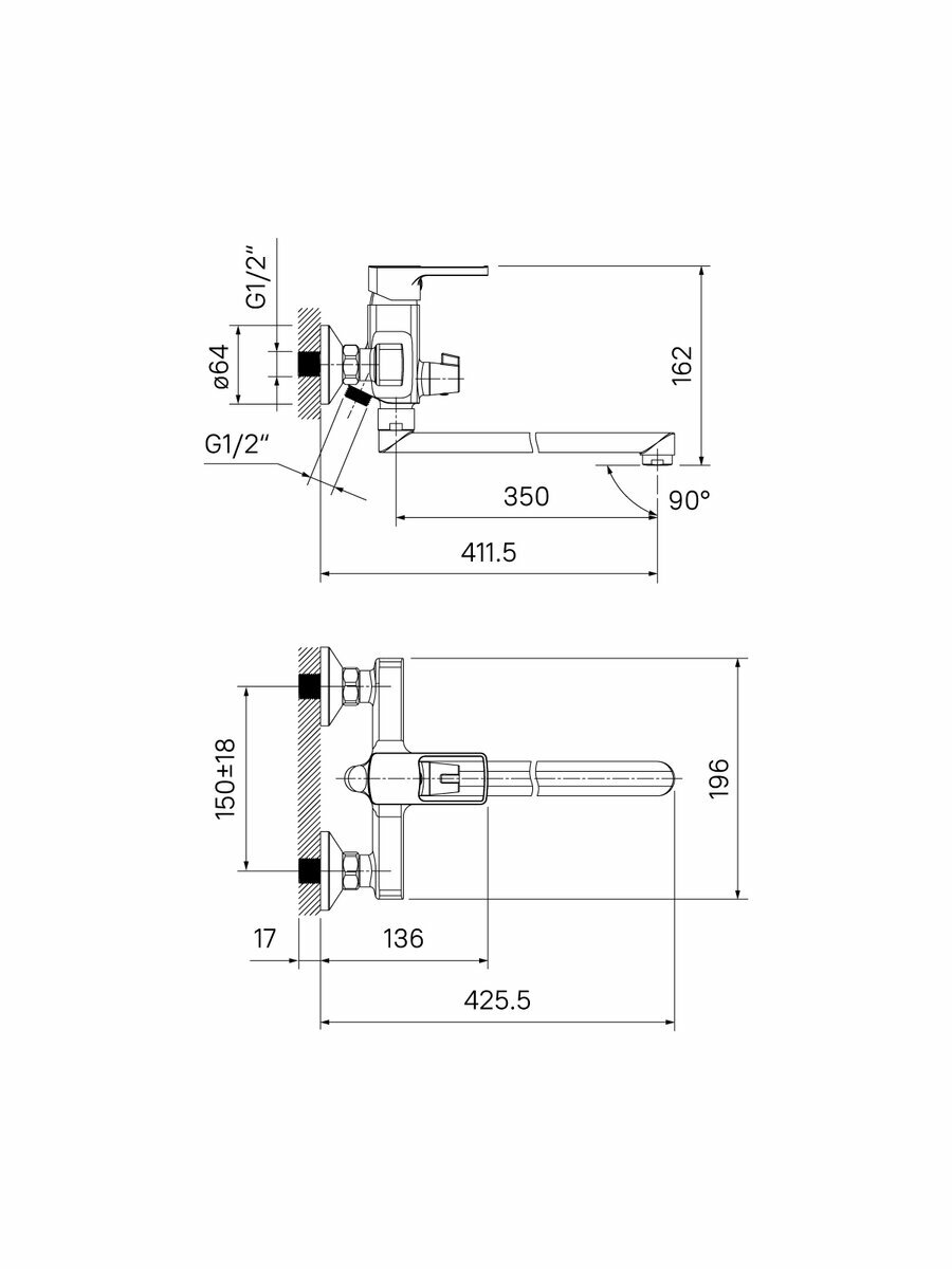 | Длина излива | 350 мм |