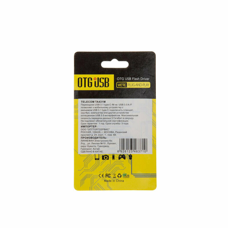 Переходник Telecom Переходник OTG USB 3.1 Type-C<->USB 3.0 Telecom TA431M (ret)