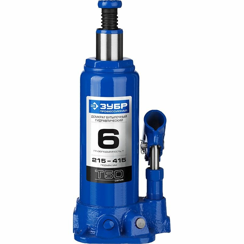 Купить Домкрат бутылочный гидравлический ЗУБР T50 43060-6-K_z01 (6 т) синий