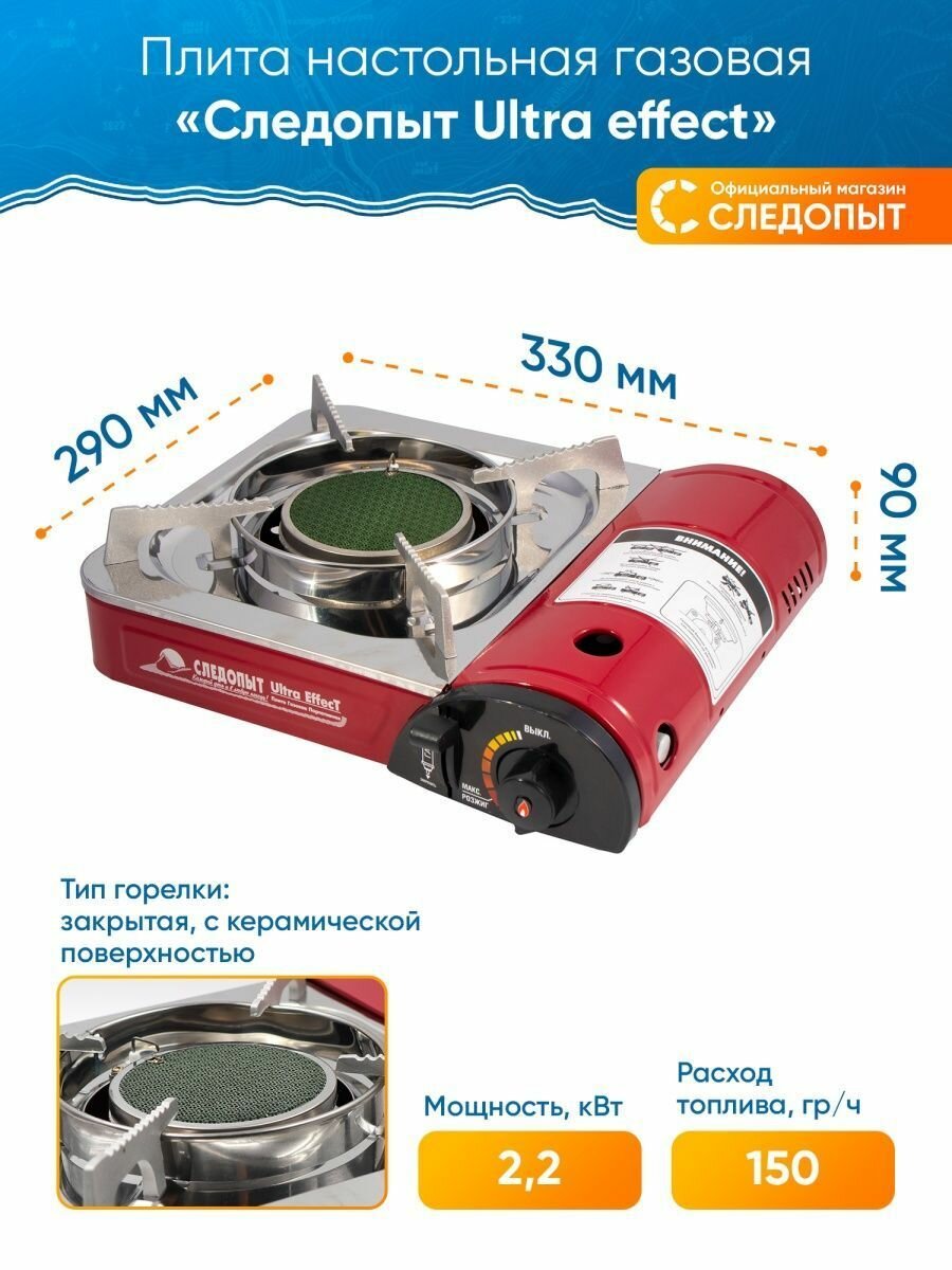 Газовая плита туристическая следопыт - UltraEffect керамическая с переходником