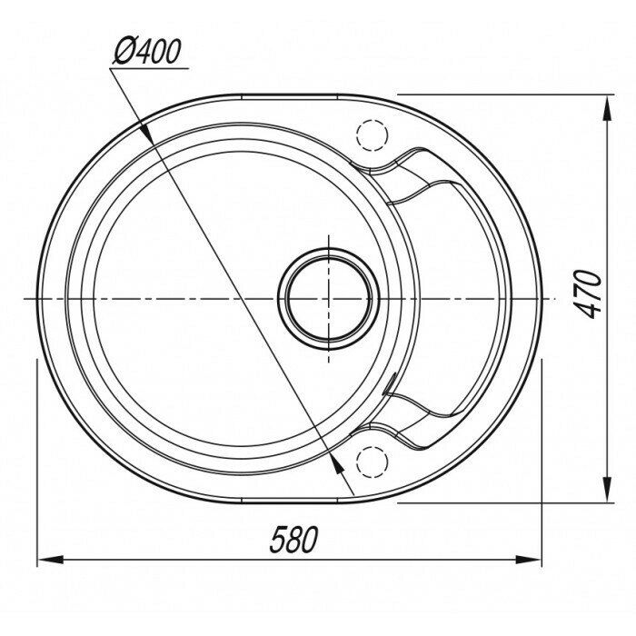 Мойка для кухни врезная каменная Dr. Gans БЕРТА-580, цвет черный, с крылом, овальная, 580х470х217 мм
