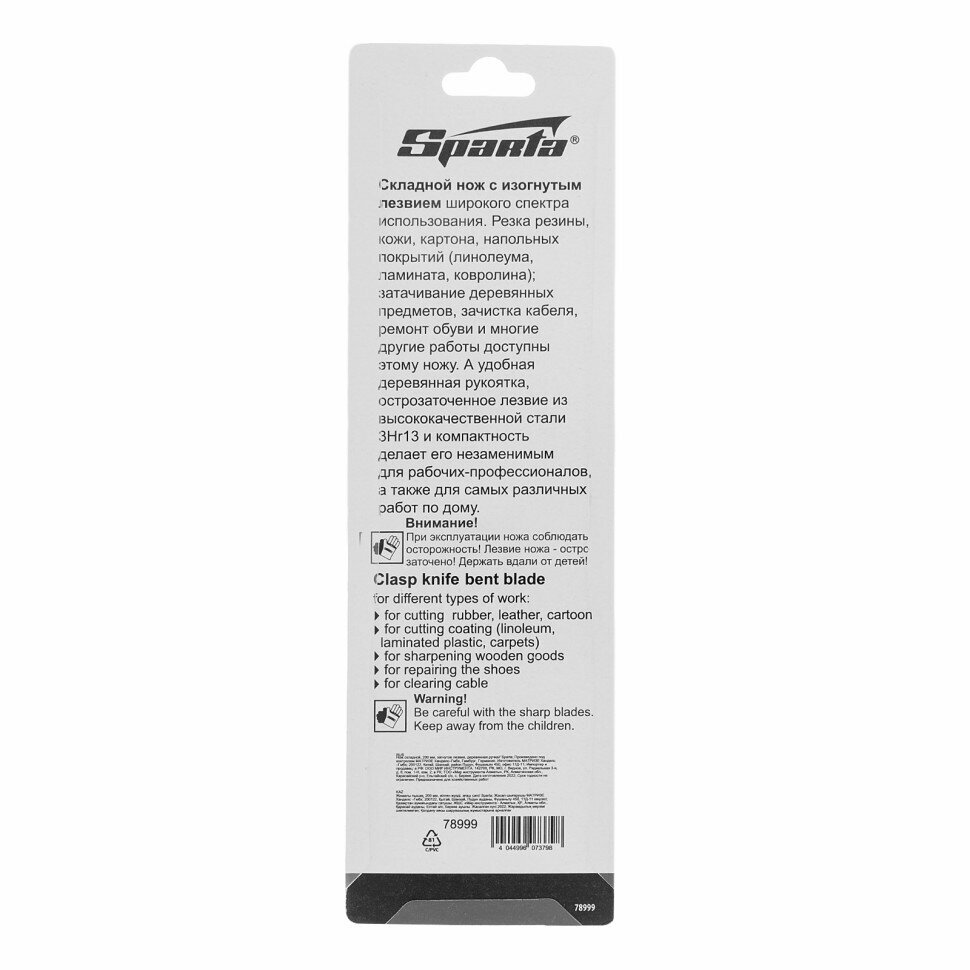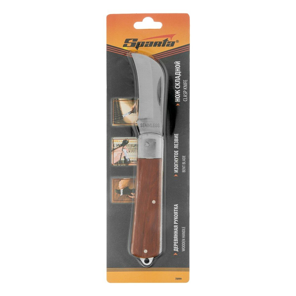 Нож складной, 200 мм, загнутое лезвие, деревянная ручка Sparta (78999)
