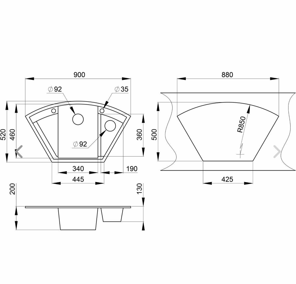9001, арктик, мойка кухонная Granula, угловая, 1.5чаши, 900*520*200/130 мм