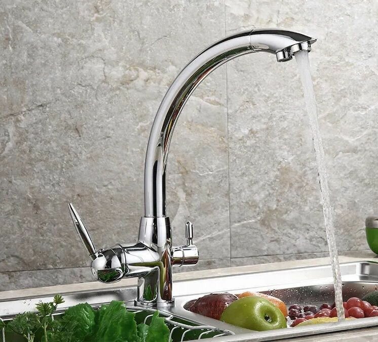 G.lauf Смеситель для кухни (мойки) с высоким поворотный изливом и фильтром для питьевой воды, хромированный