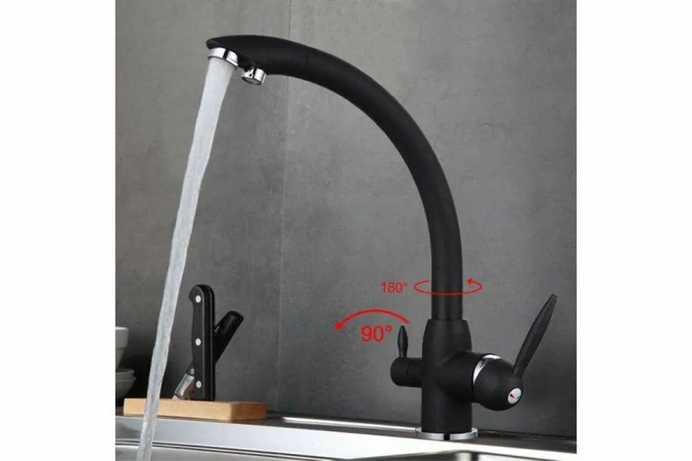 Смеситель для кухни, мойки G.lauf GOP18-A093KB с подключением к фильтру для питьевой воды, с высоким поворотный изливом, кран для кухни под фильтр, латунный, цвет: черный