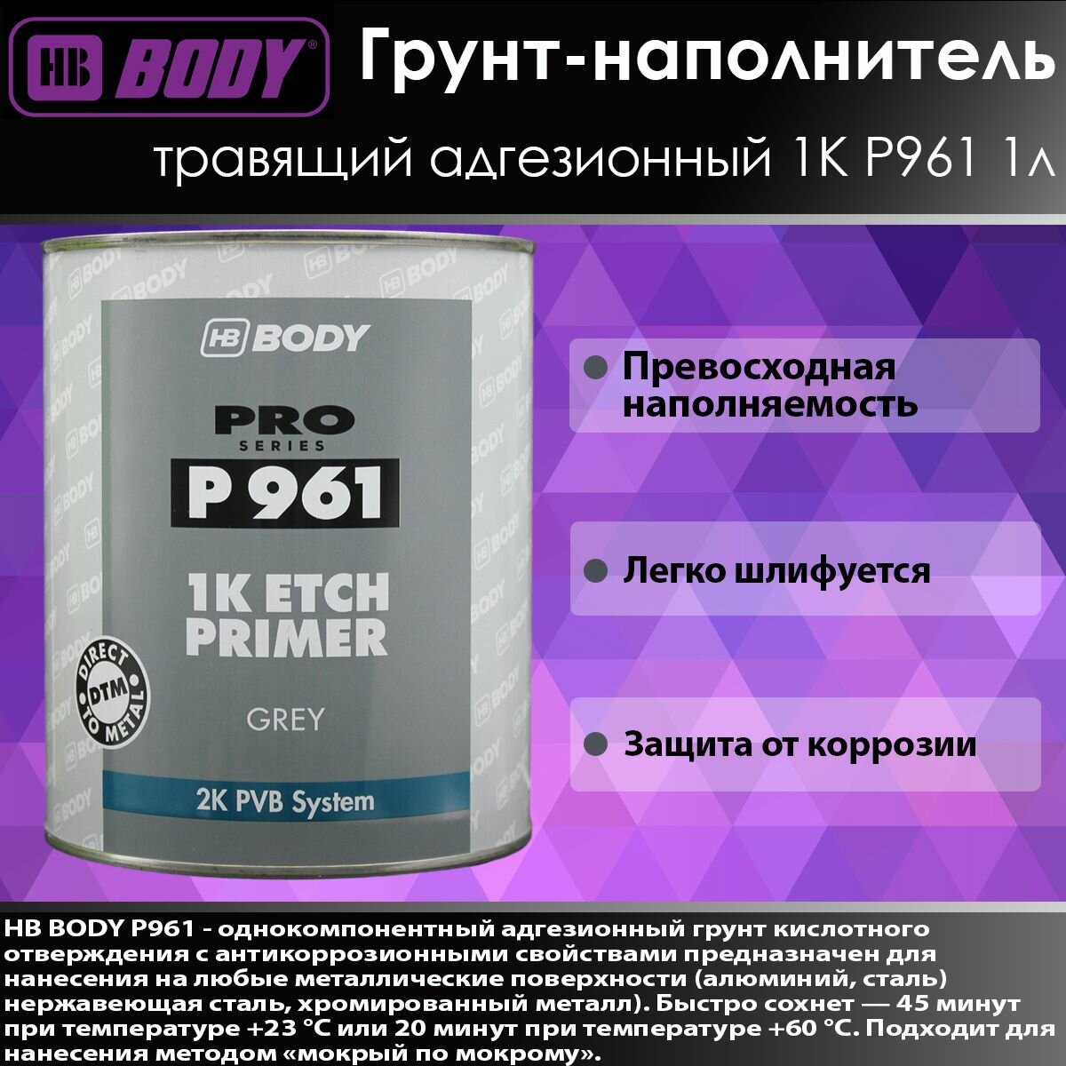 Body 961 Грунт-наполнитель (серый) 1л. Автогрунтовка. интересное: