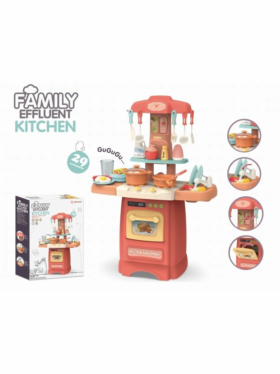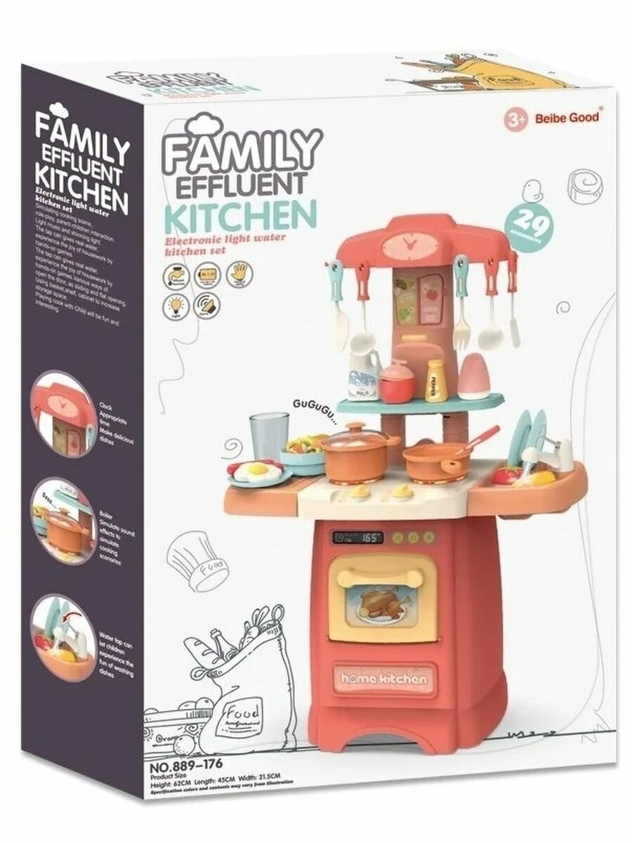 Игровой набор Кухня beibe good Home Kitchen 889-176, свет, звук, 29 предметов - красная