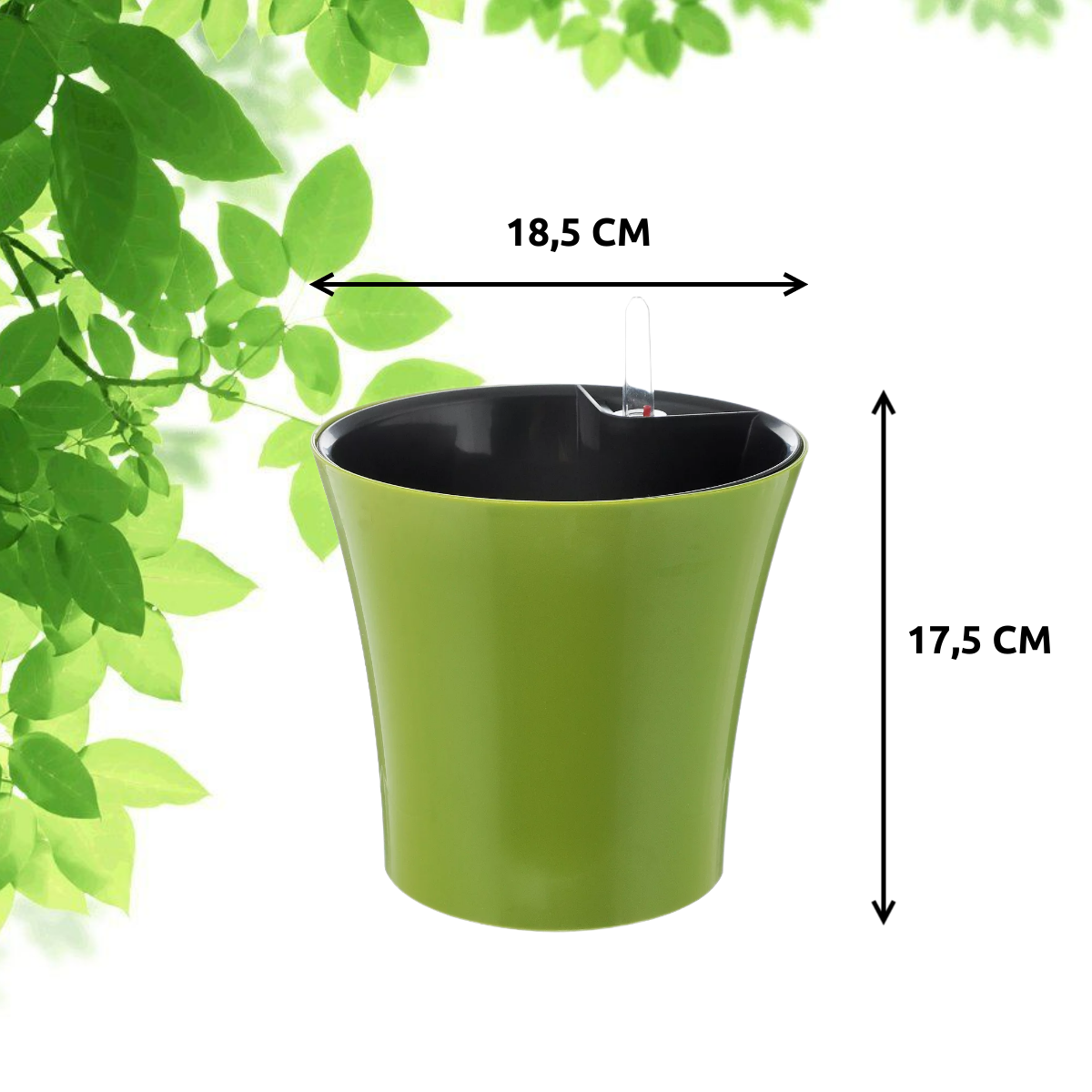 Горшок пластиковый автополив оливковый D19 H21