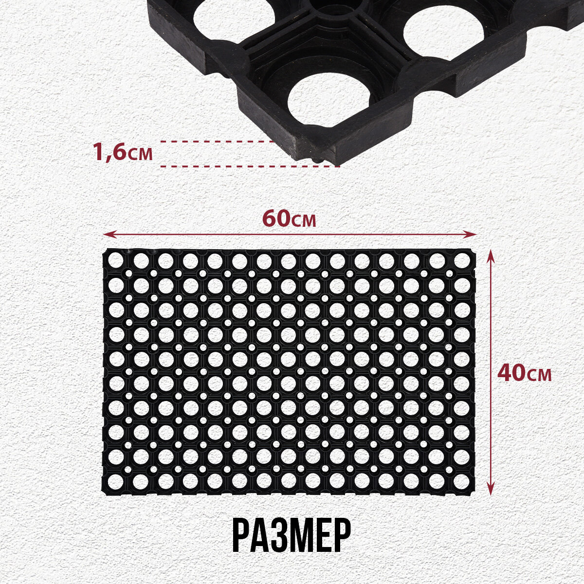 Купить Коврик ячеистый грязесборный, 40×60×1,6 см, цвет чёрный, "Hidde", материал резина