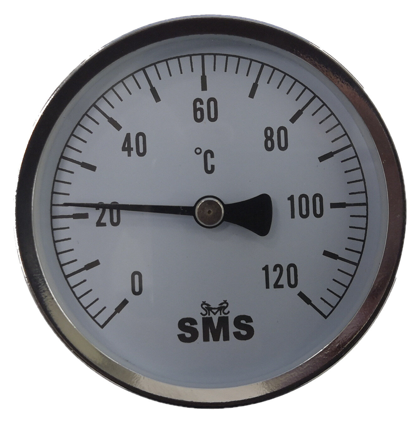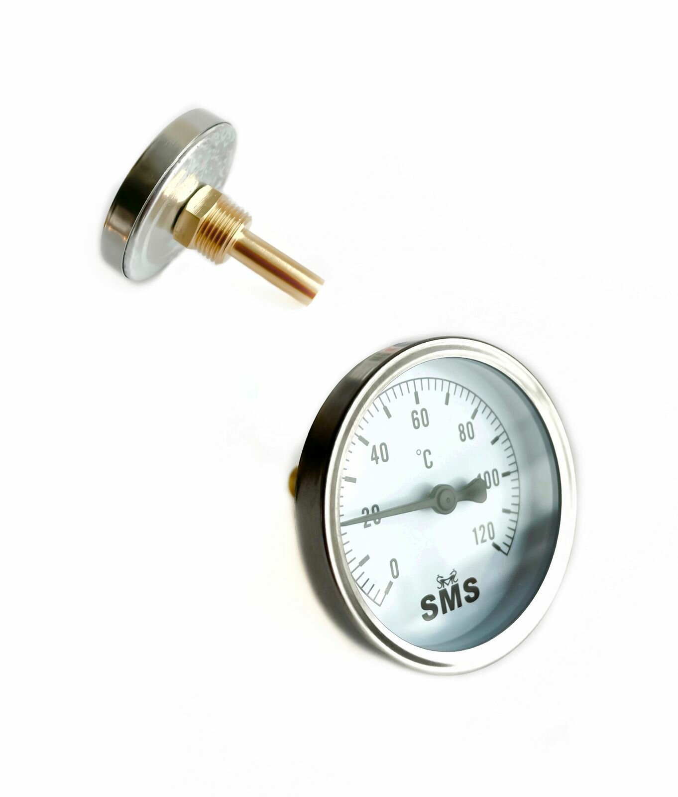 Термометр биметаллический с погружной гильзой d80x50x1/2", 120*