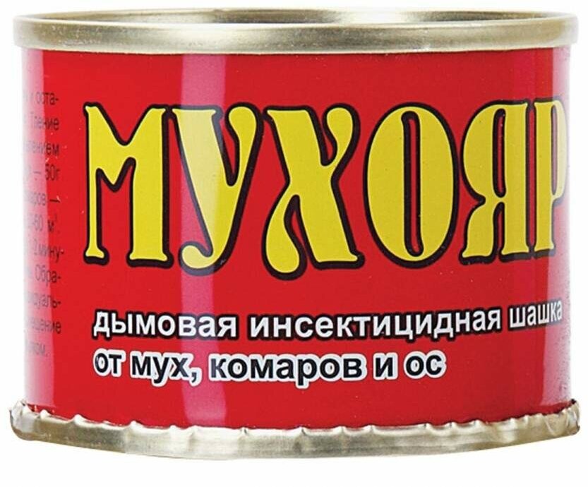 Мухояр Дымовая шашка 50гр. От ОС, мух и мошек д/дезинфекции помещений, банка Ваше Хозяйство
