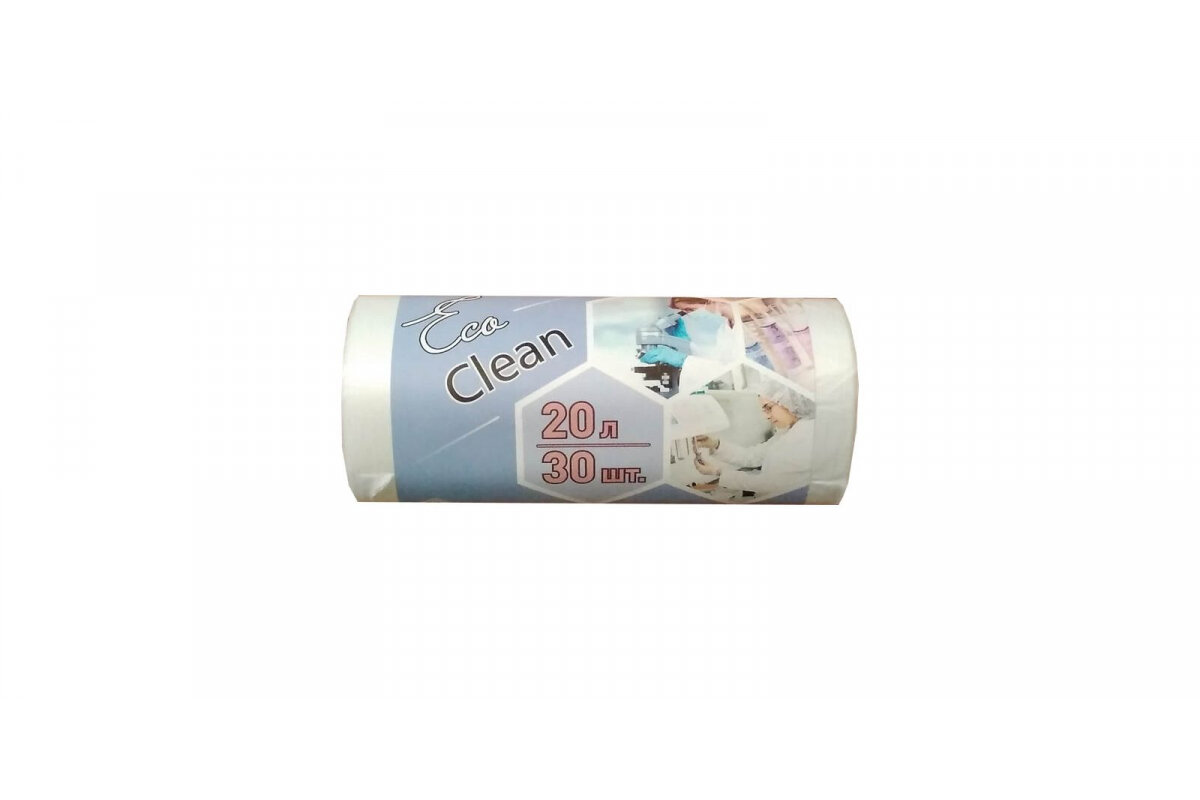 Пакеты для мусора 20л, КБ "EcoClean" (22x50см, 6мкм, белые) ПНД, 30шт. в рулоне (3286)