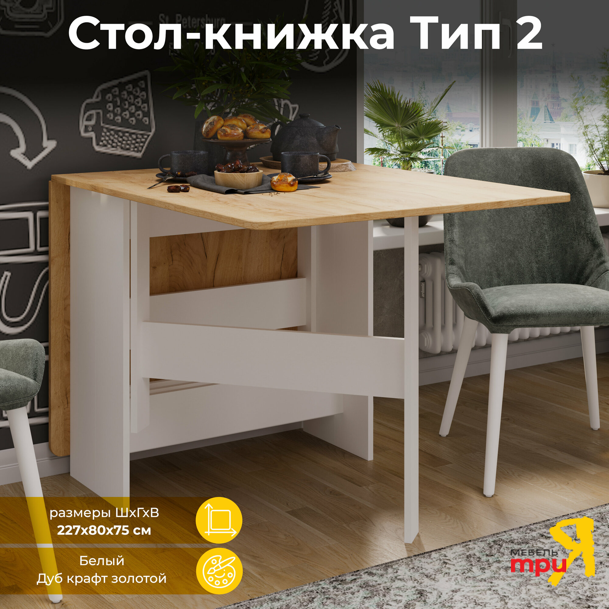 СохранитьСтол-книжка раскладной, стол обеденный книжка белый бежевый дуб, (ВхДхГ) 75х227х80 см, Тип 2 интересное: