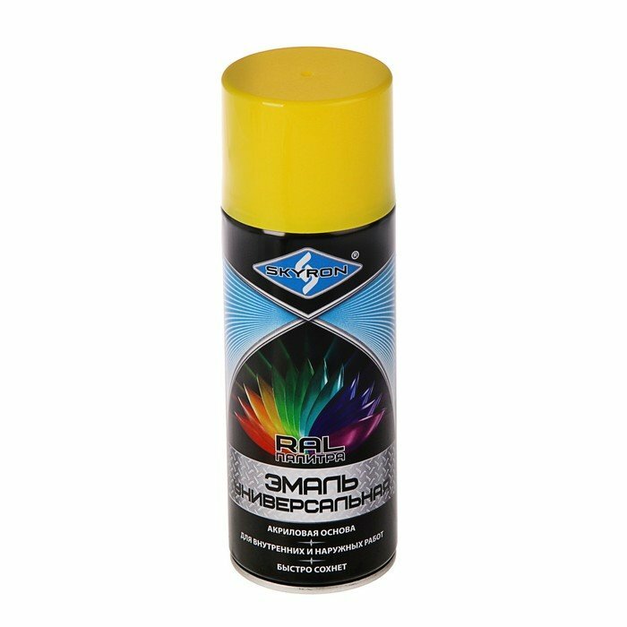 Эмаль универсальная акриловая SKYRON, желтая (RAL 1018), 520 мл.
