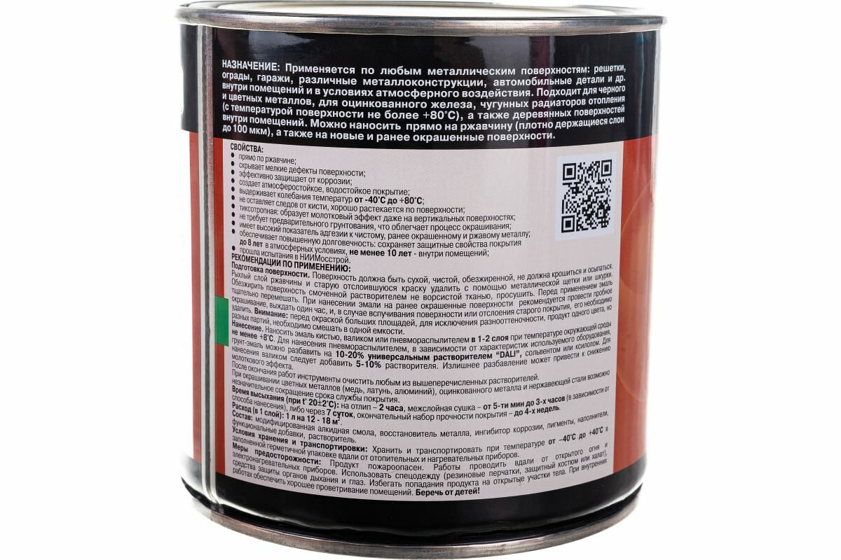 Грунт-эмаль по ржавчине 3в1 Dali черная молотковая глянцевая 2 л