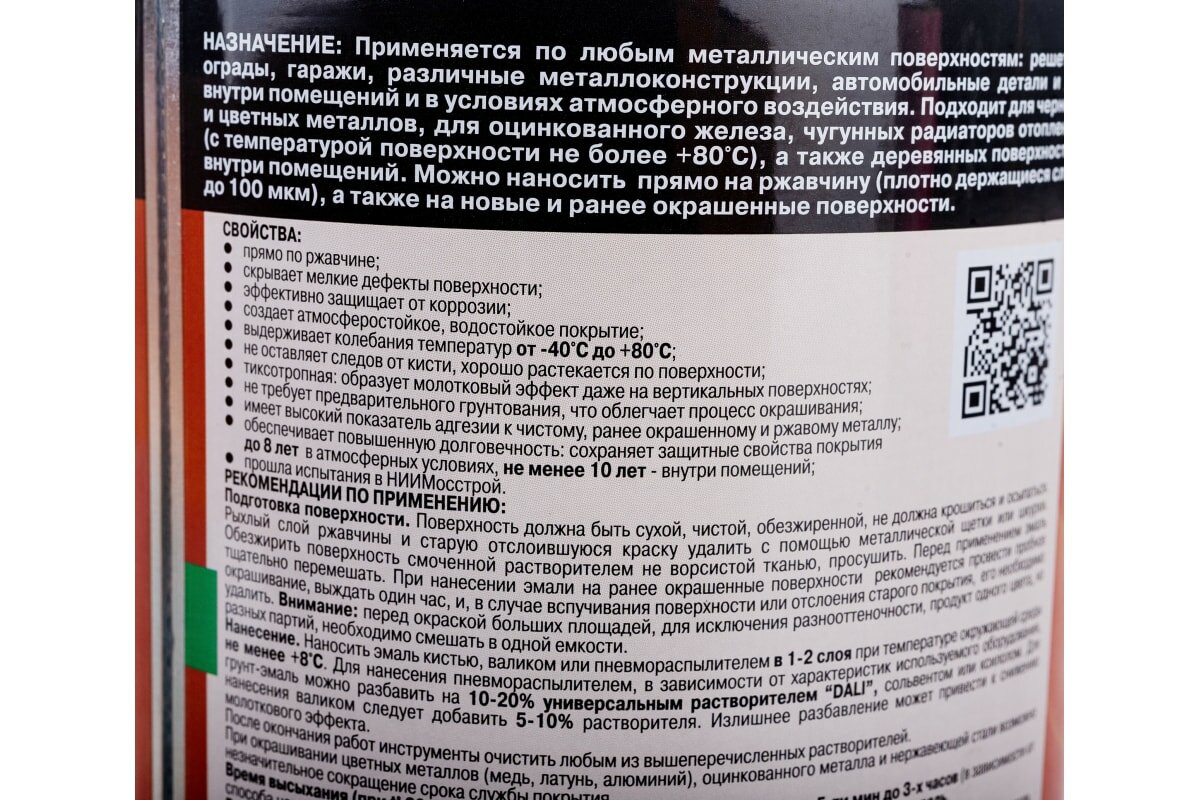 грунт-эмаль по ржавчине молотковая Dali черный, 0,75л