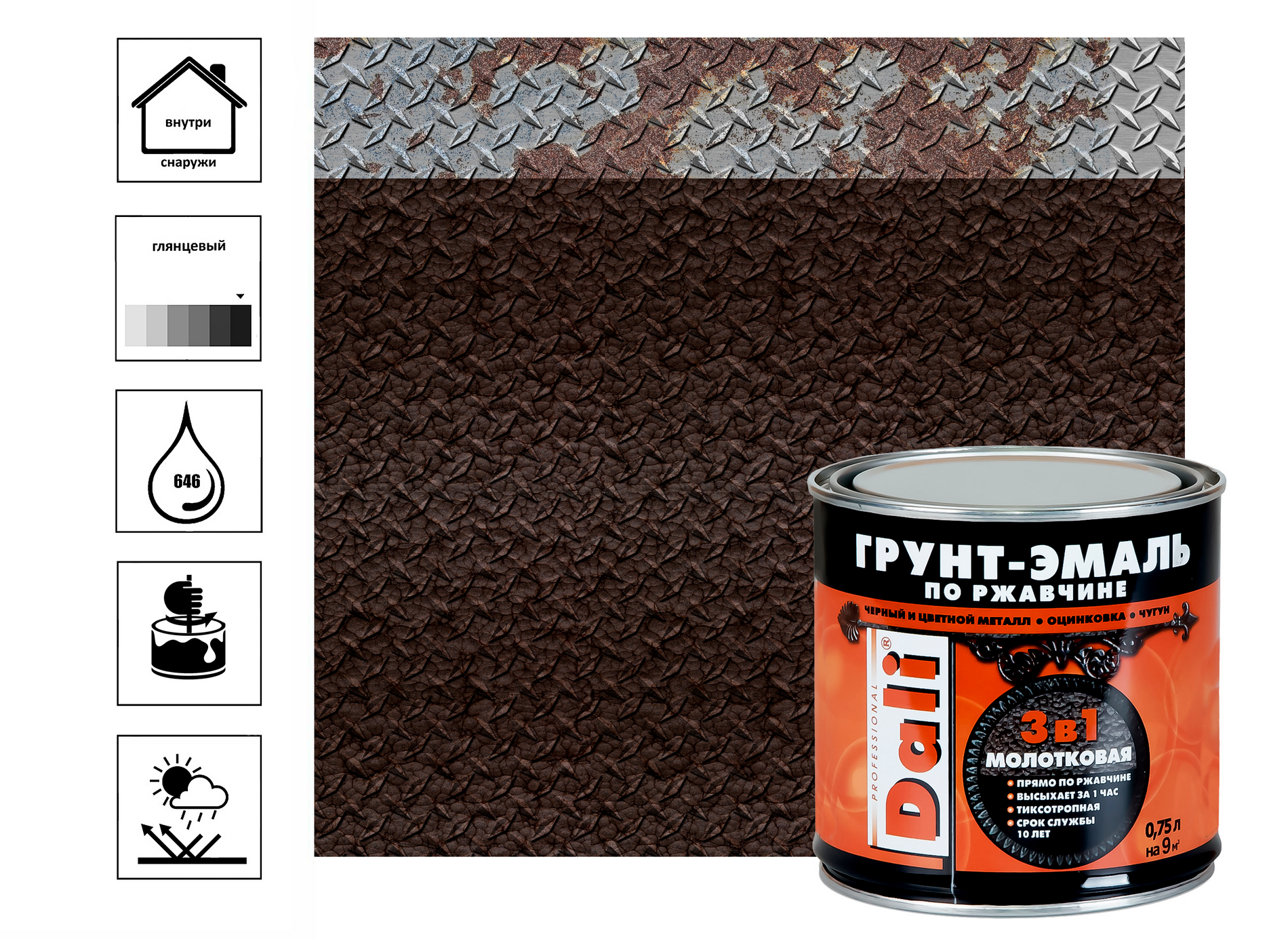 Купить Грунт-эмаль по ржавчине 3в1 Dali молотковая 0,75 л, коричневый