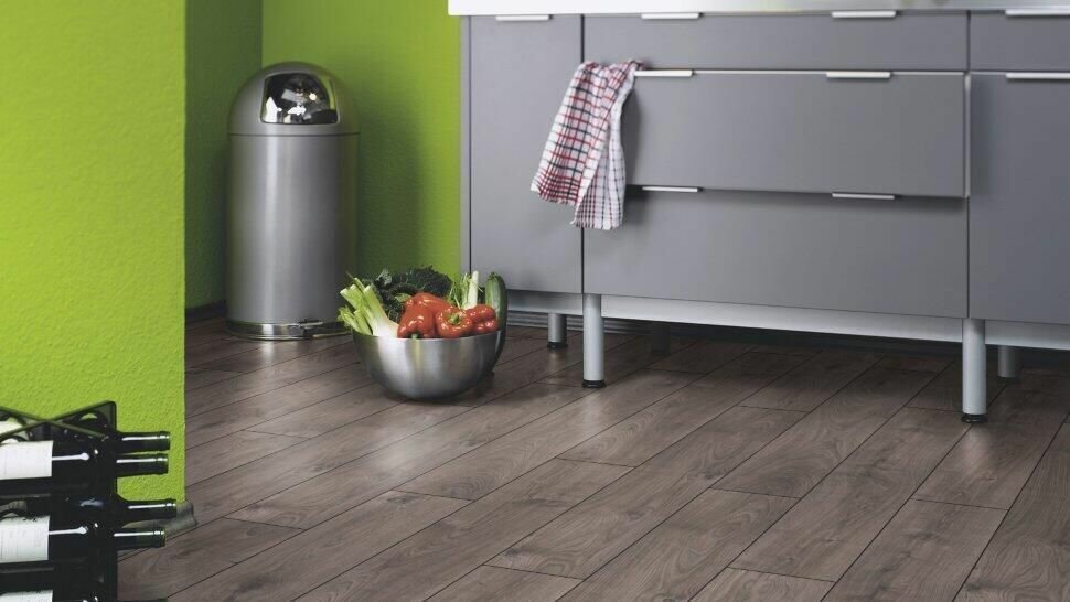 Выбрал вариант Kronotex Aqua Robusto. Интересный чёткий рисунок, что важно. Почитал отзывы, отмечают, что не выцветает со временем. Могу отметить, что он хорошо укладывается. На вид выглядит прочно. Но через месяц пользования могу сказать, что не продавливается под ногами и шкафами. Ногам комфортно ходить по ламинату |