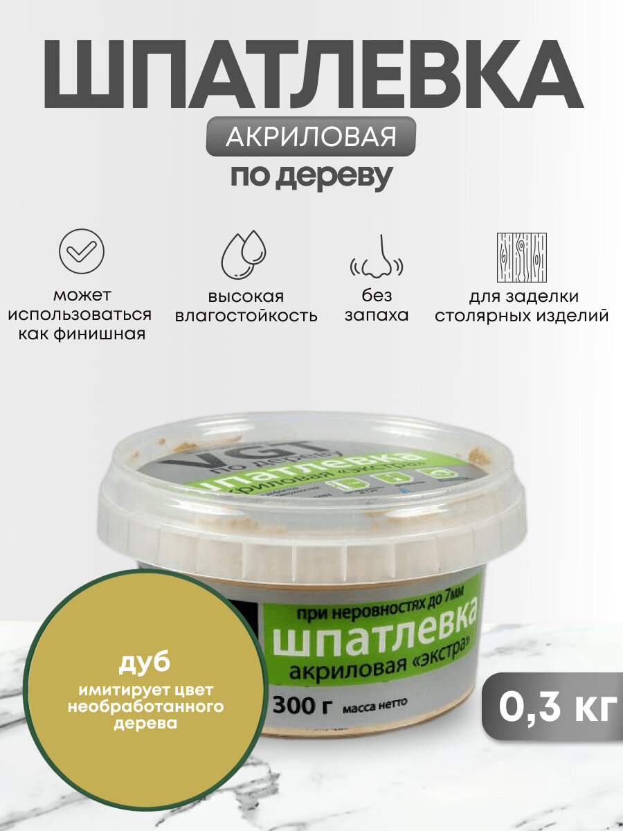 Шпатлевка по дереву VGT Экстра, акриловая, 0,3 кг, дуб
