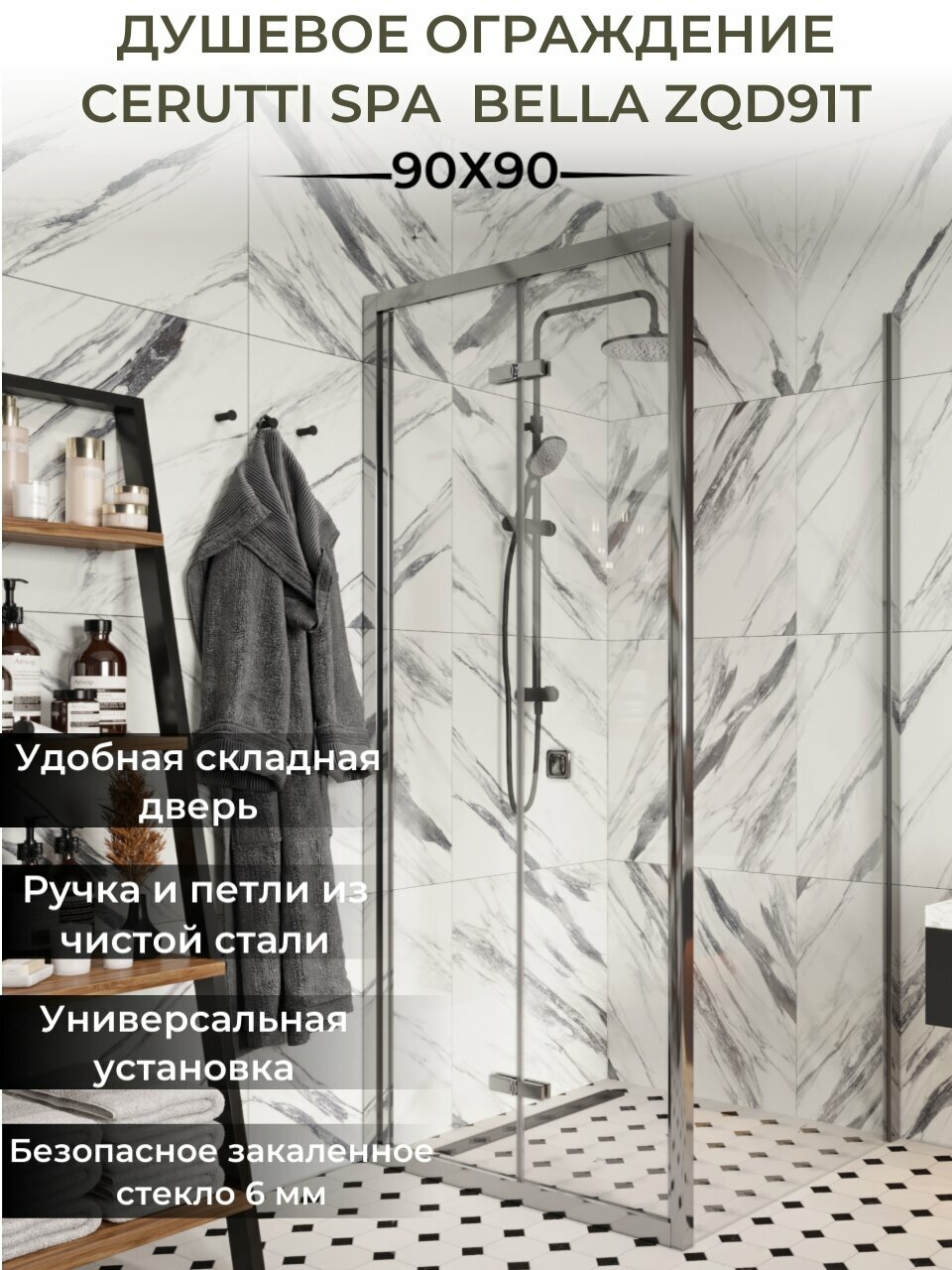 Душевой уголок Cerutti SPA Bella ZQD91T 90см*90см хром