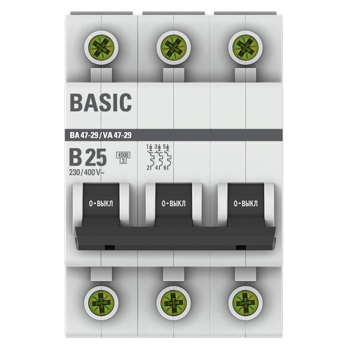 Купить EKF Basic автоматический выкл. ВА47-29 3P 25А хар-ка B 4,5кА mcb4729-3-25-B (арт. 676357)