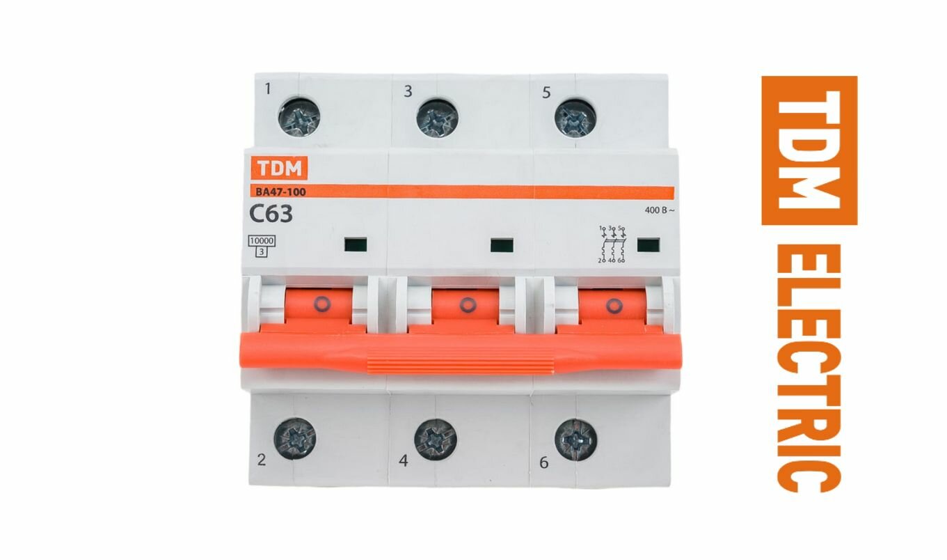 Автомат TDM ВА47-100 3Р, 63 А, 10 кА, С