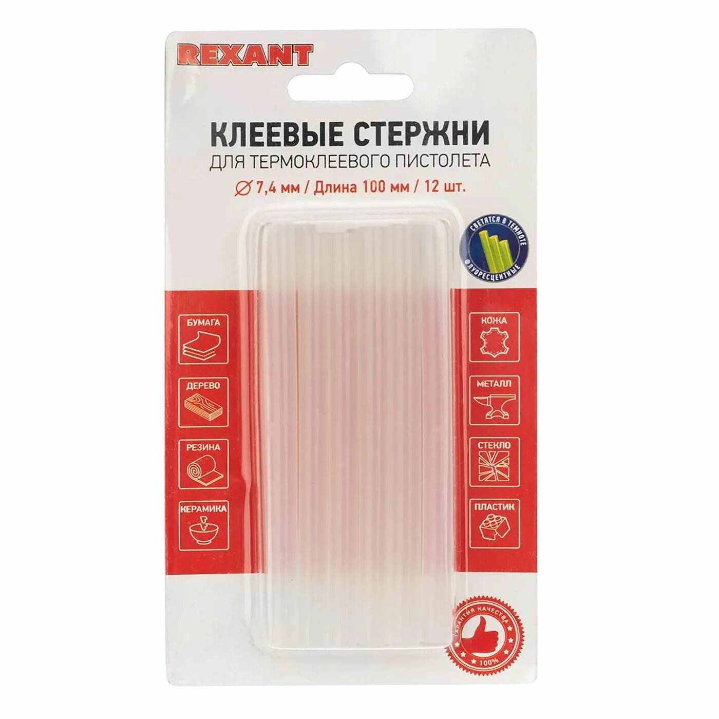 Стержень клеевой REXANT d7.4х100мм прозрачные светящиеся, 12шт. (09-1060)
