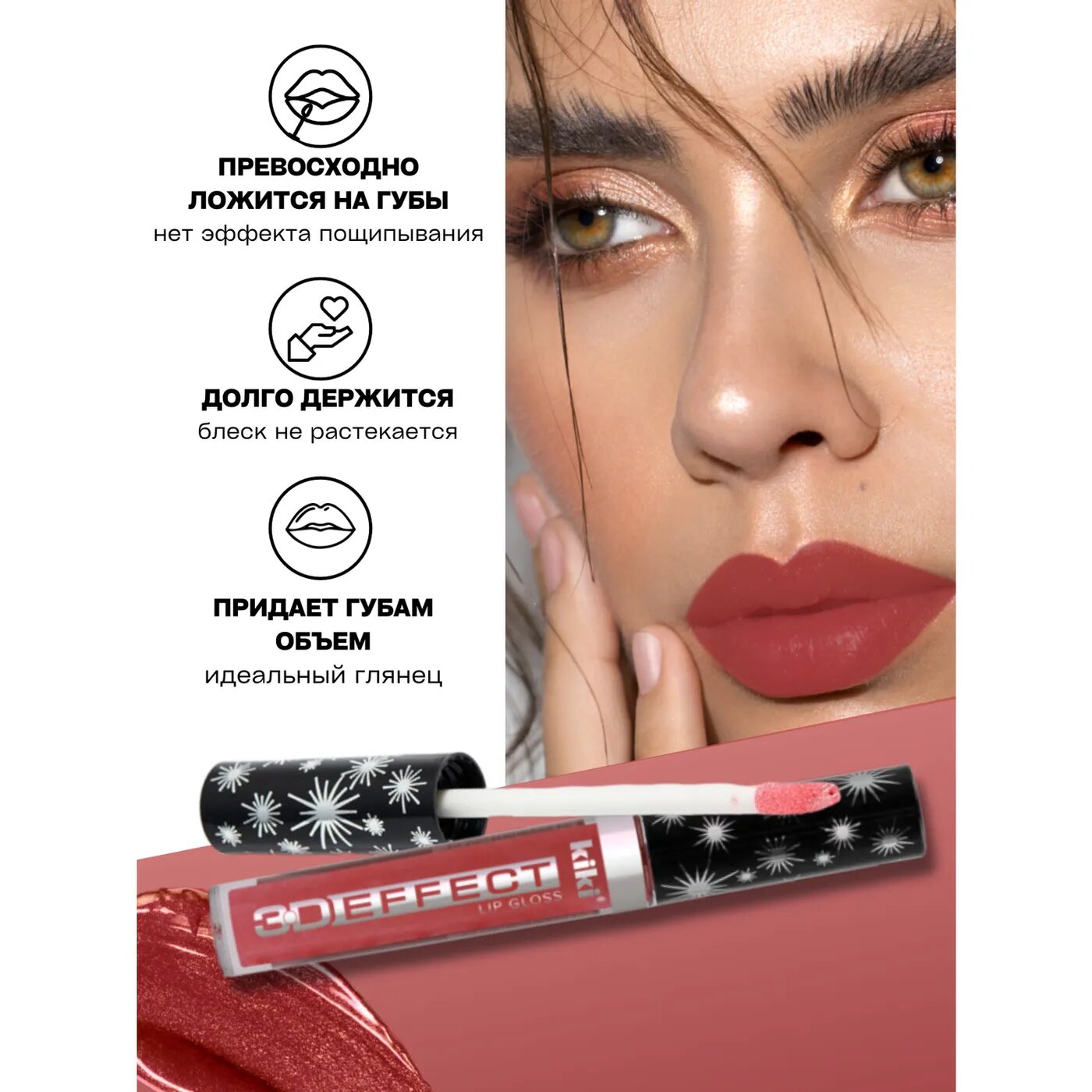 Kiki Блеск для губ 3D EFFECT 914 Каштаново-розовый