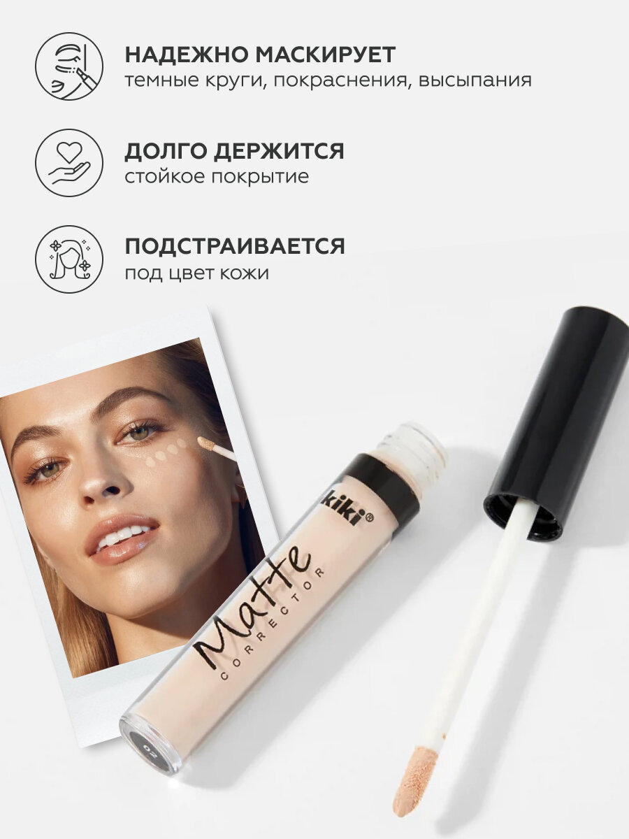 Корректор для лица и глаз kiki Matte corrector тон 01 светло-бежевый, консилер для лица, кремовая текстура, средней плотности, с аппликатором