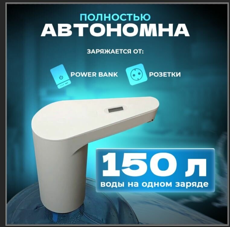 | Плюсы: | Удобная вещь, теперь не нужно качать воду рукой, достаточно дважды тапнуть на сенсорную кнопку и вода польется автоматически. Долго держит заряд и еще показывает жесткость воды |
