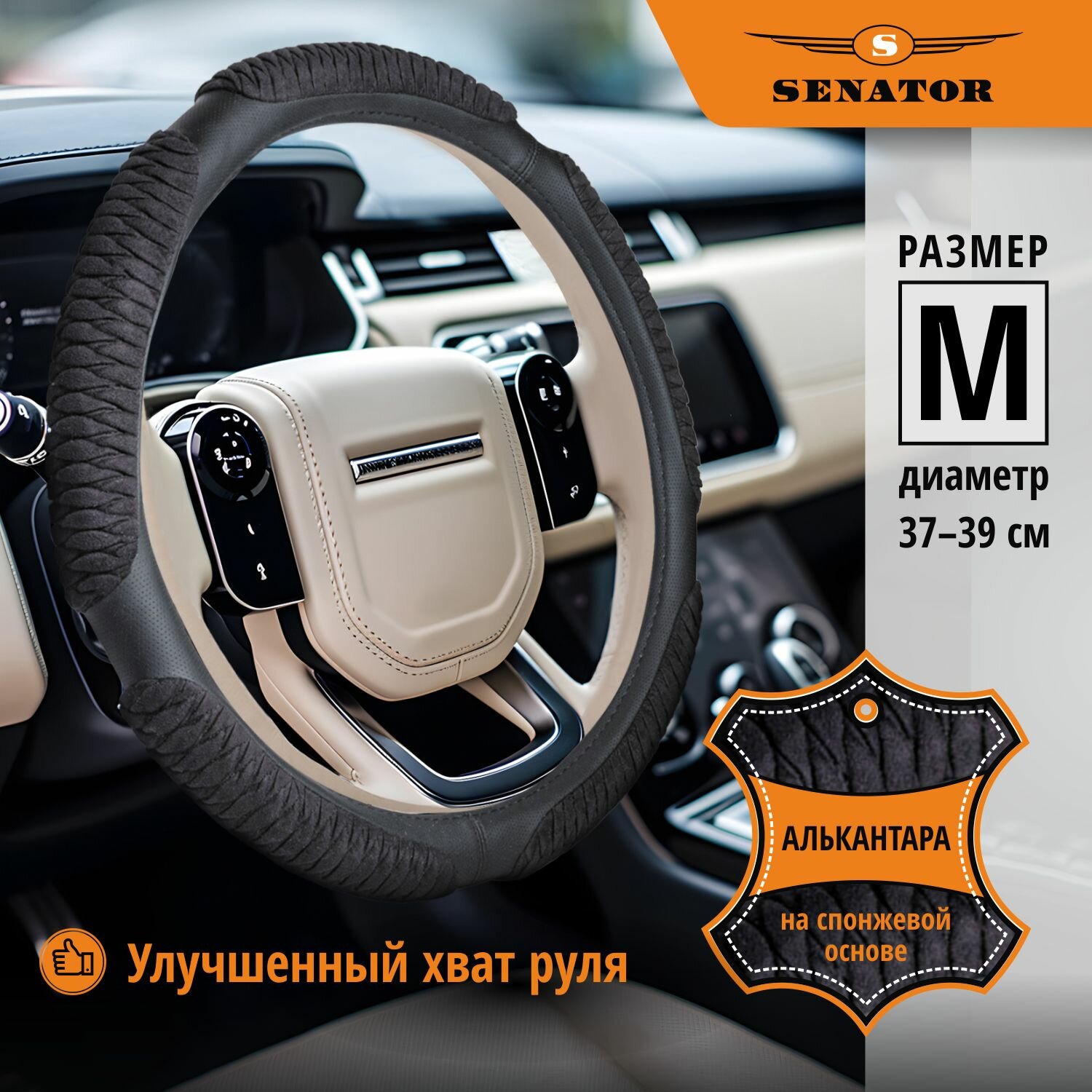 Оплетка руля "M" d37-39см "SENATOR Colorado" кожаная, черная