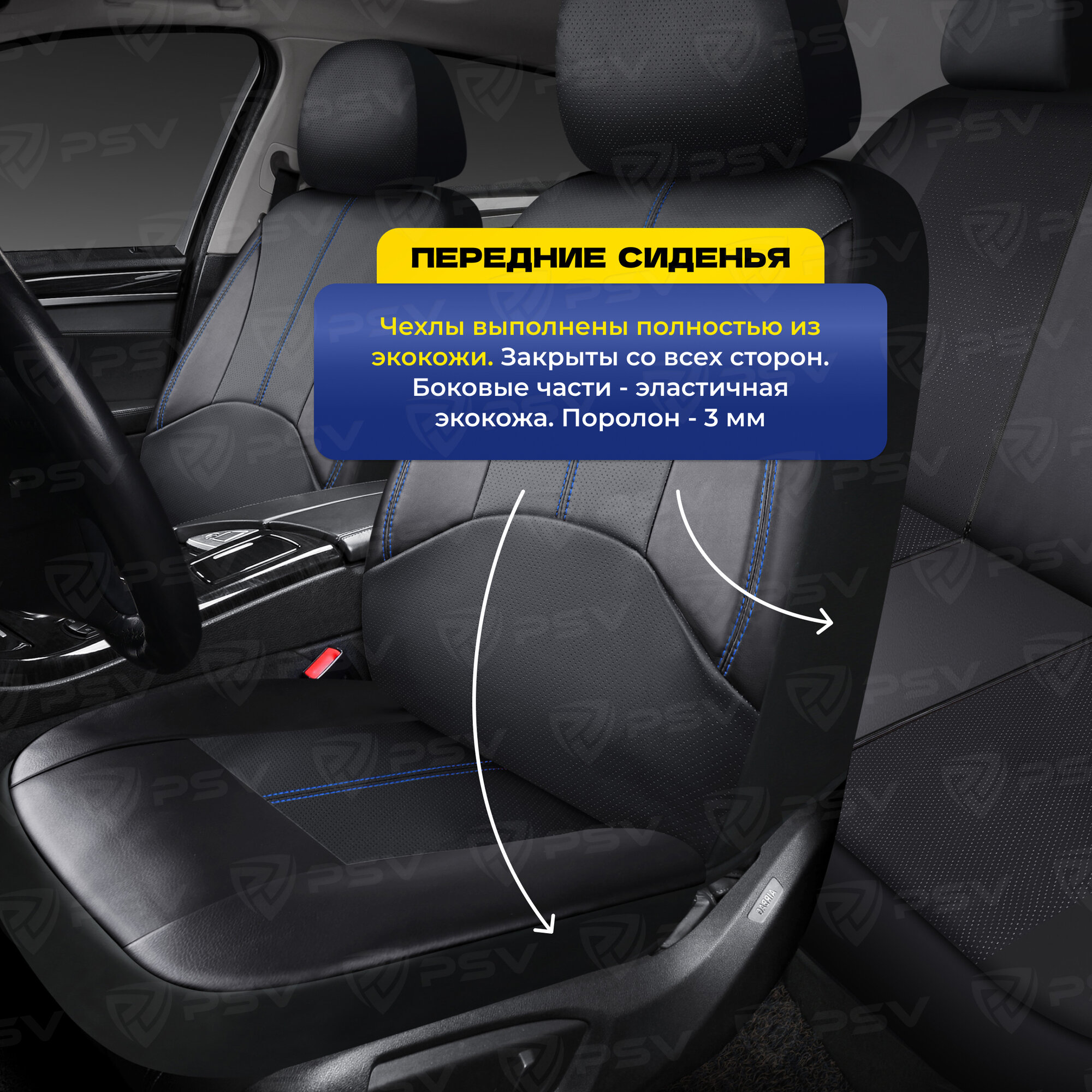 Чехлы на весь салон PSV Imperial Next (Черный/отстрочка синяя), экокожа