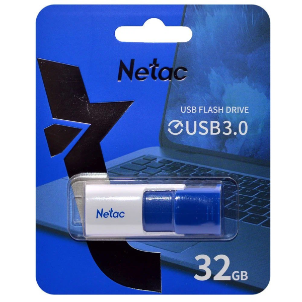 Память Flash USB 128 Gb Netac U182 Blue (NT03U182N-128G-30BL), USB3.0, сдвижной корпус, пластиковая бело-синяя