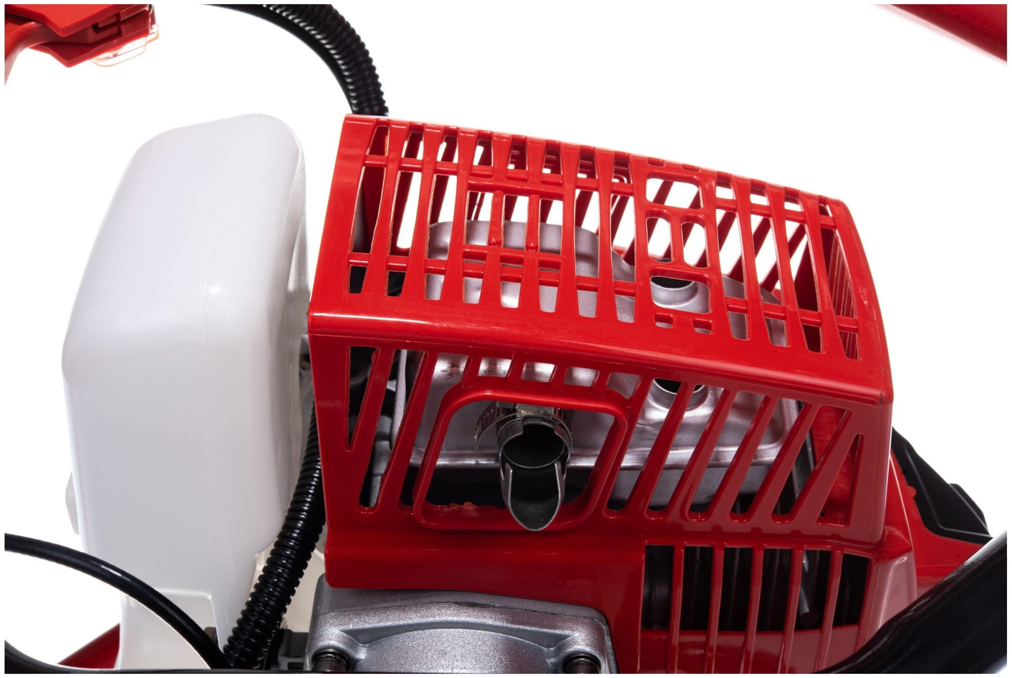 Первые косяки при распаковке, см. фото 1. Из ручки торчит стальная проволока, проткнуть руку нефиг делать. 2. Нет одного из винтов крепления бензобака. 3. Крепление ручки газа на горизонтальной рукояти (для работы одному) расположено так, что при опрокидывании на эту сторону она ломается 100%, т.к. вся нагрузка идёт на ручку, а не на раму. |