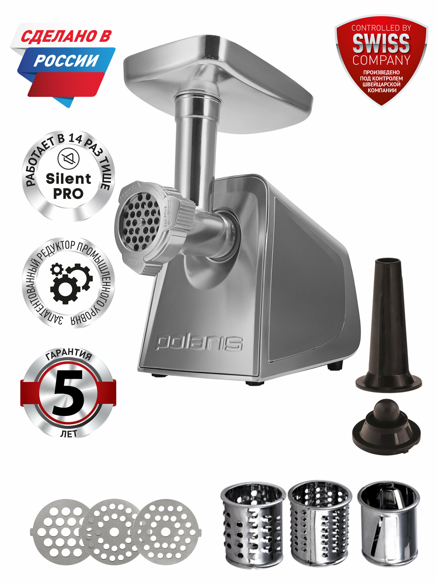 Мясорубка электрическая Polaris PMG 2292AL Silent, Металлик