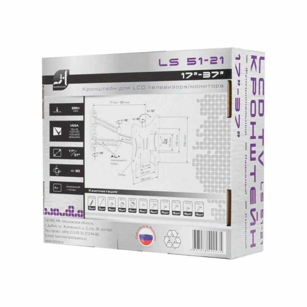 Кронштейн для телевизора Algenium LS 51-21 с наклоном и поворотом до 25кг 17..37 дюймов VESA 75-200мм чёрный