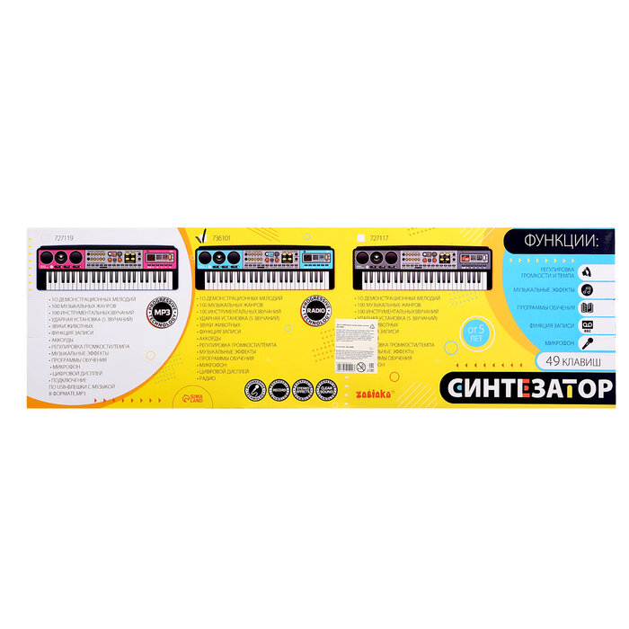 Синтезатор ZABIAKA (Забияка) "Музыкальный взрыв", 49 клавиш, с радио, работает от батареек (736101)