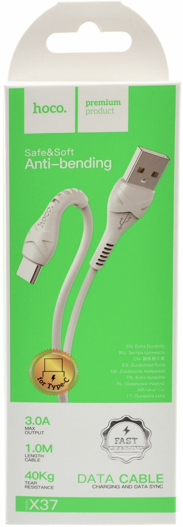 Кабель USB HOCO X37 Cool, USB - Type-C, 3A, 1 м, белый, быстрая зарядка