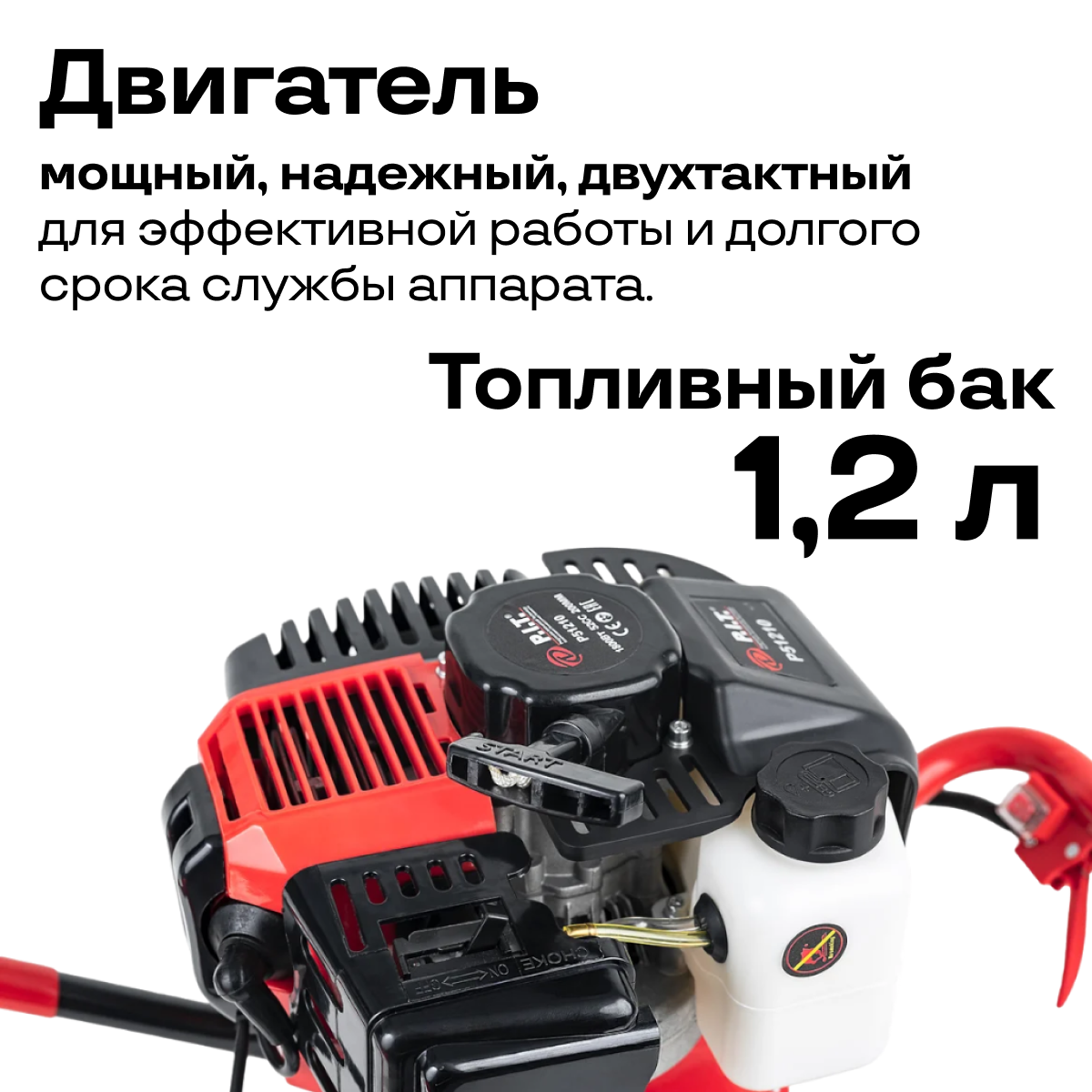 Мотобур бензиновый P.I.T. P51210 (1,8кВт, 52cм3, 8000об/мин, бак 1,2л.)