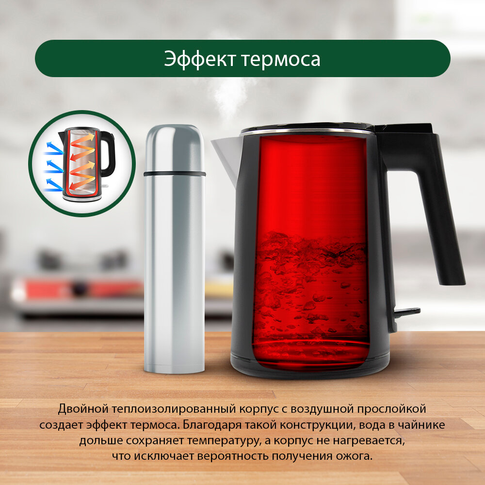 | Плюсы: | Стильный дизайн, быстро закипает, долго держит температуру! |