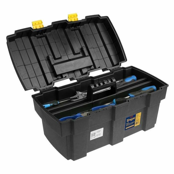 Ящик для инструмента тундра, 22", 565 х 325 х 290 мм, пластиковый, лоток, два органайзера