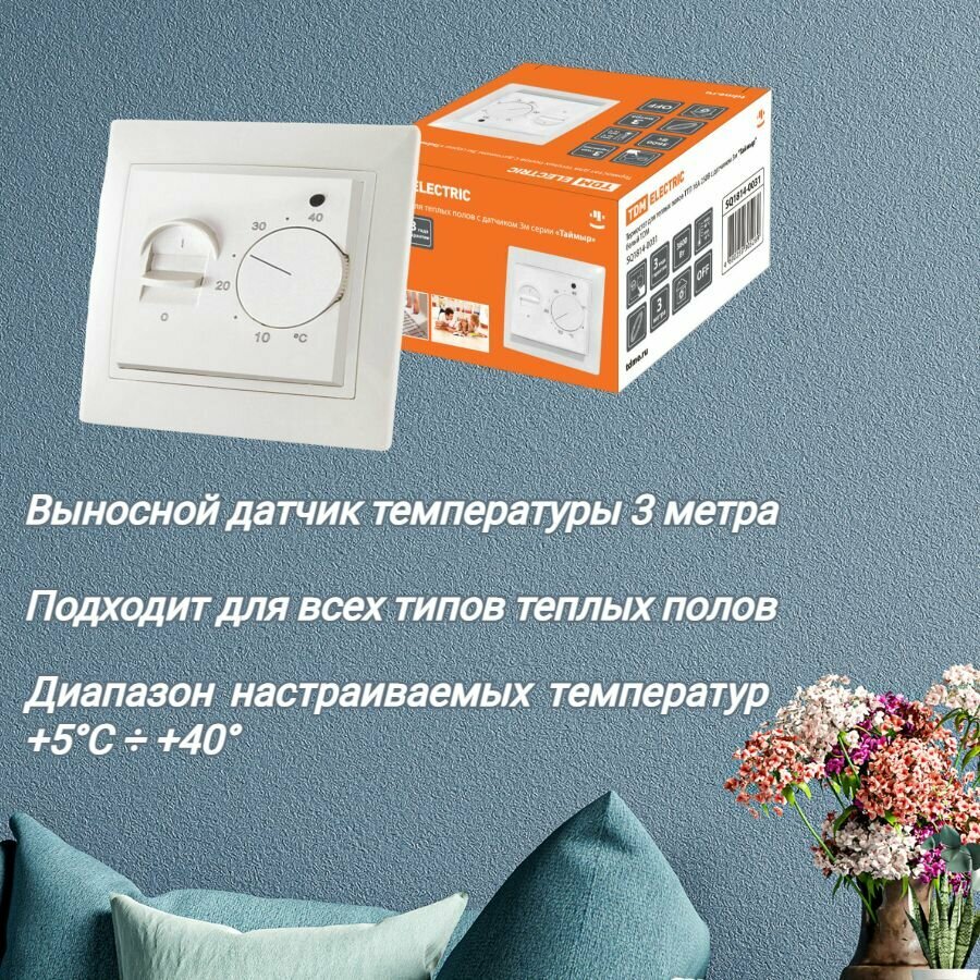 Термостат для теплых полов ТТП 16А 250В с датчиком 3м "Таймыр" белый TDM